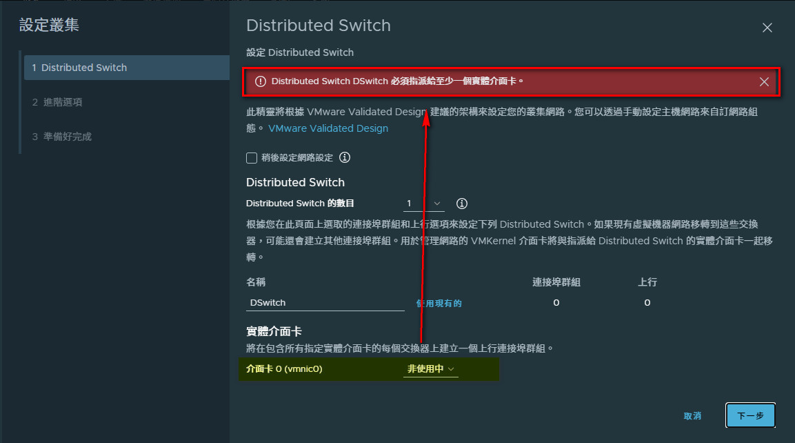 將兩台ESXi伺服器加入至新建置的資料中心,發現其中一台ESXi伺服器有出現驚嘆號的警示,接著在監控→硬體健全狀況中,發現「The Smaill Footprint CIM Broker Daemon (SFCBD) is not running. Storage health data is reoported by this daemon. Please see this KB article for information on enabling this service.」警告訊息。(如下圖)